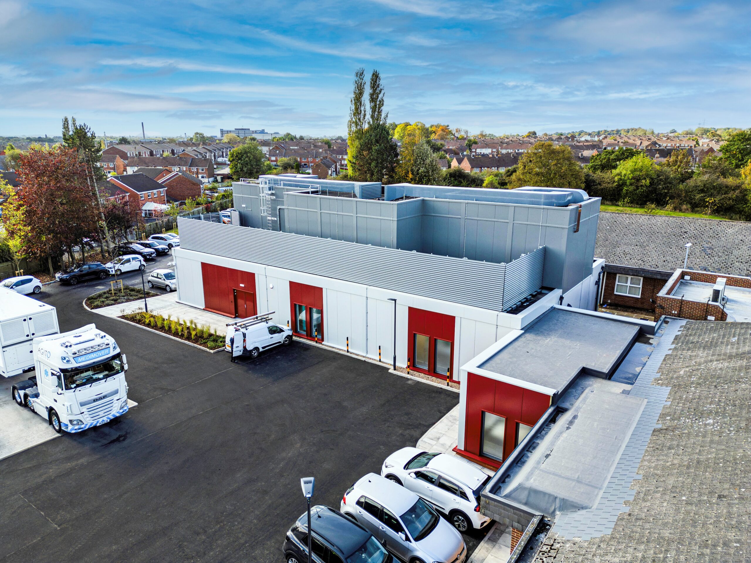 Accelerated timelines: Parallel off-site manufacture and on-site readiness bring facilities online in a fraction of the time.