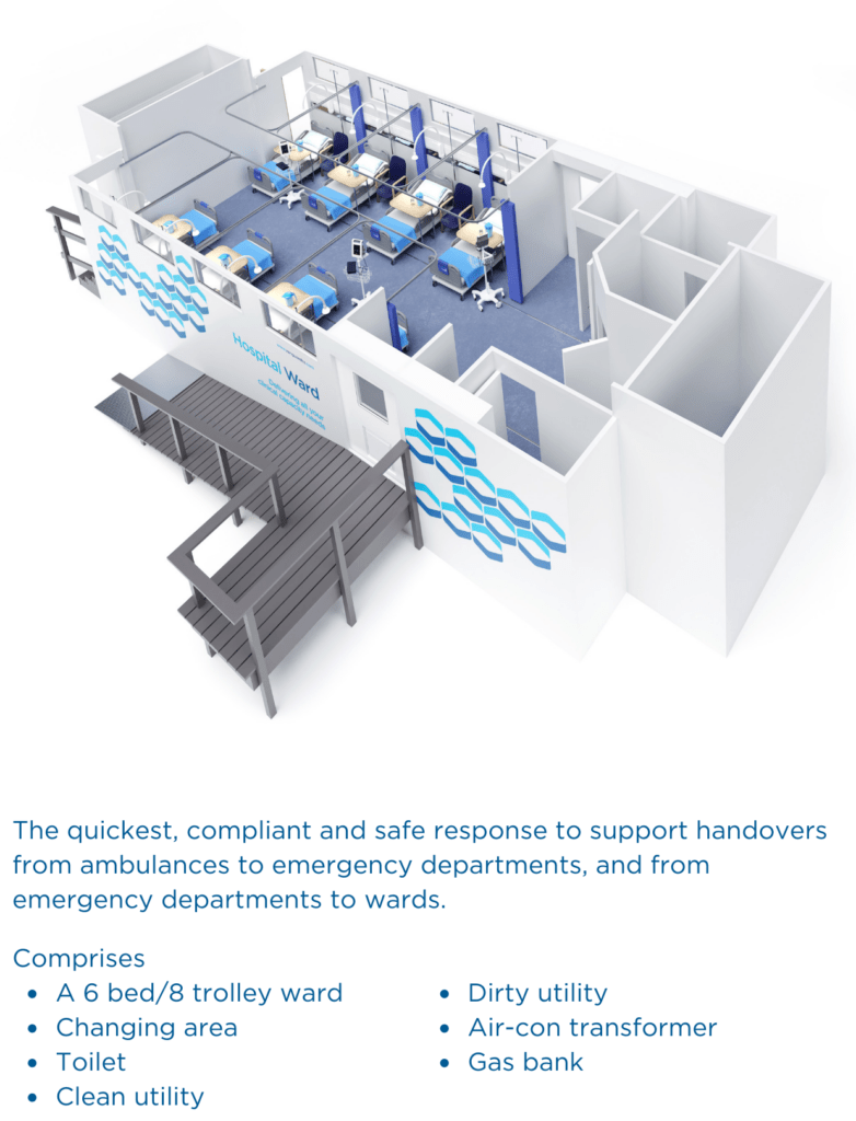 Съвместният проект между Vanguard и North West Anglia NHS Foundation Trust ще увеличи капацитета на пациентите в натоварени моменти и ще позволи на персонала на линейката да бъде преразпределен, за да отговаря на 999 повиквания. Отделението ще бъде обслужвано от клиничния екип на Trust и трябва да бъде на място шест месеца. Закъсненията при предаването на линейки и грижите в коридора бяха широко докладвани в NHS тази зима. За да помогне за увеличаване на капацитета в Питърбъро възможно най-бързо, за да се облекчат и избегнат тези проблеми, проектът беше планиран и мобилната единица беше доставена в рамките на седмици.