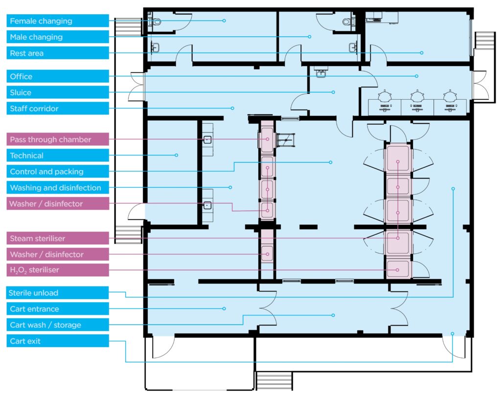 Tämä Vanguard:n Hullin tehtaalla nykyaikaisilla rakennusmenetelmillä rakennettu laitos tarjoaa vaihtoehtoista kapasiteettia laajan peruskorjauksen aikana. Neljällä pesukoneella, kolmella sterilointilaitteella ja apulaitteilla se korvaa koko kirurgisen palvelun suuressa yliopistollisessa sairaalassa Ranskassa.