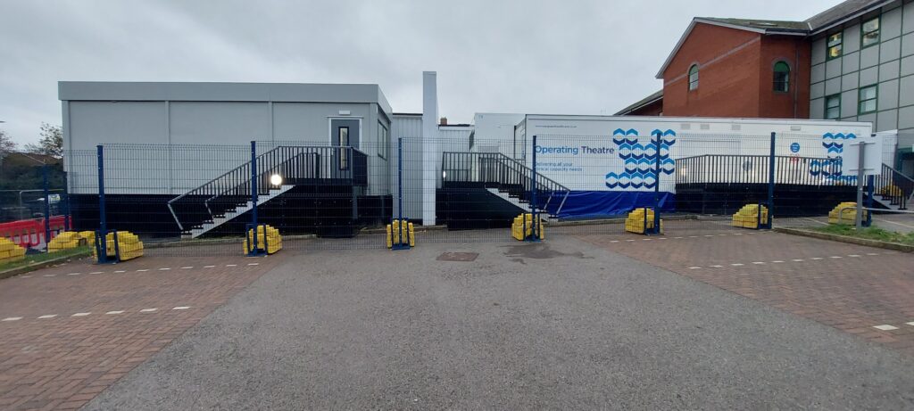 W ramach projektu renowacji, który usuwał zagrożenie dla bezpieczeństwa pacjentów i personelu spowodowane obecnością zbrojonego autoklawizowanego betonu komórkowego (RAAC), konieczne było rozwiązanie zapewniające ciągłość opieki. Zaplanowane procedury powinny być kontynuowane podczas prac remontowych dachu, a sale operacyjne szpitala nie mogły być używane.